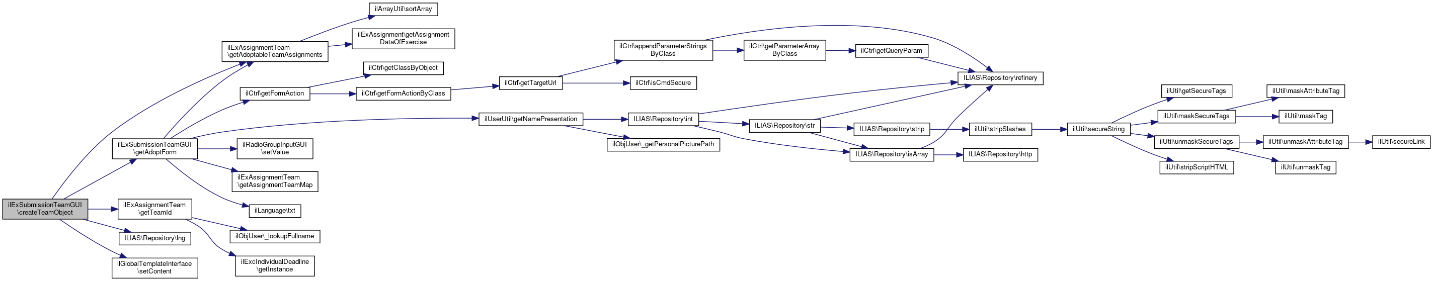 Here is the call graph for this function:| ilExSubmissionTeamGUI::createSingleMemberTeamObject | ( | ) |