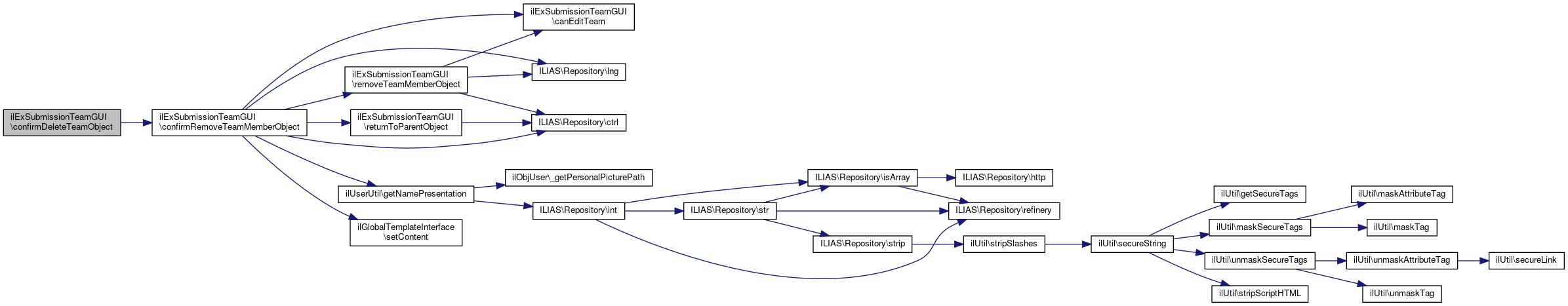 Here is the call graph for this function:| ilExSubmissionTeamGUI::confirmRemoveTeamMemberObject | ( | bool | $a_full_delete = false | ) |