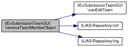 Here is the caller graph for this function:| ilExSubmissionTeamGUI::removeTeamMemberObject | ( | bool | $a_full_delete = false | ) |