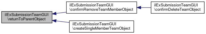 Here is the caller graph for this function:| ilExSubmissionTeamGUI::returnToParentObject | ( | ) |