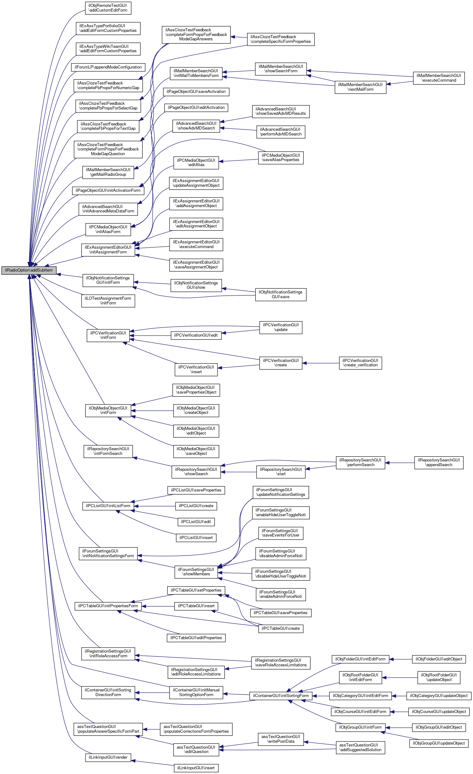 Referenced by ilObjRemoteTestGUI\addCustomEditForm(), ilExAssTypePortfolioGUI\addEditFormCustomProperties(), ilExAssTypeWikiTeamGUI\addEditFormCustomProperties(), ilForumLP\appendModeConfiguration(), ilAssClozeTestFeedback\completeFbPropsForNumericGap(), ilAssClozeTestFeedback\completeFbPropsForSelectGap(), ilAssClozeTestFeedback\completeFbPropsForTextGap(), ilAssClozeTestFeedback\completeFormPropsForFeedbackModeGapQuestion(), ilMailMemberSearchGUI\getMailRadioGroup(), ilPageObjectGUI\initActivationForm(), ilAdvancedSearchGUI\initAdvancedMetaDataForm(), ilPCMediaObjectGUI\initAliasForm(), ilExAssignmentEditorGUI\initAssignmentForm(), ilObjNotificationSettingsGUI\initForm(), ilLOTestAssignmentForm\initForm(), ilPCVerificationGUI\initForm(), ilObjMediaObjectGUI\initForm(), ilRepositorySearchGUI\initFormSearch(), ilPCListGUI\initListForm(), ilContainerGUI\initManualSortingOptionForm(), ilForumSettingsGUI\initNotificationSettingsForm(), ilPCTableGUI\initPropertiesForm(), ilRegistrationSettingsGUI\initRoleAccessForm(), ilContainerGUI\initSortingDirectionForm(), assTextQuestionGUI\populateAnswerSpecificFormPart(), and ilLinkInputGUI\render().