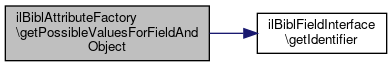 Here is the call graph for this function:| ilBiblAttributeFactory::getPossibleValuesForFieldAndObject | ( | ilBiblFieldInterface | $field, |