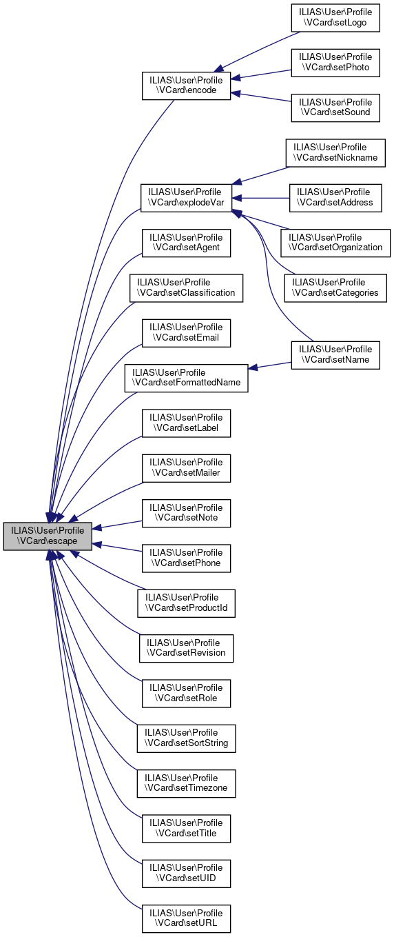 Here is the call graph for this function:| ILIAS\User\Profile\VCard::setNote | ( | string | $note = '' | ) |
