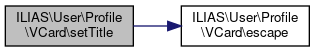 Here is the call graph for this function:| ILIAS\User\Profile\VCard::setTitle | ( | string | $title = '' | ) |