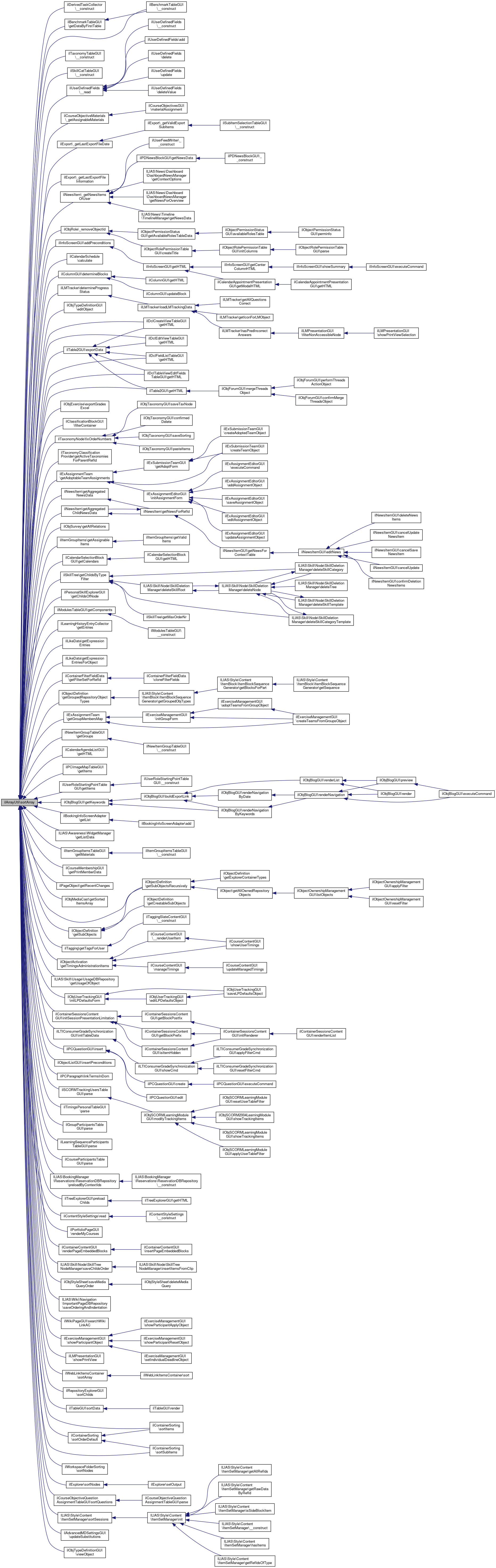 Referenced by ilDerivedTaskCollector\__construct(), ilBenchmarkTableGUI\__construct(), ilTaxonomyTableGUI\__construct(), ilSkillCatTableGUI\__construct(), ilUserDefinedFields\__read(), ilCourseObjectiveMaterials\_getAssignableMaterials(), ilExport\_getLastExportFileDate(), ilExport\_getLastExportFileInformation(), ilNewsItem\_getNewsItemsOfUser(), ilObjRole\_removeObjectId(), ilInfoScreenGUI\addPreconditions(), ilCalendarSchedule\calculate(), ilColumnGUI\determineBlocks(), ilLMTracker\determineProgressStatus(), ilObjTypeDefinitionGUI\editObject(), ilTable2GUI\exportData(), ilObjExercise\exportGradesExcel(), ilClassificationBlockGUI\filterContainer(), ilTaxonomyNode\fixOrderNumbers(), ilTaxonomyClassificationProvider\getActiveTaxonomiesForParentRefId(), ilExAssignmentTeam\getAdoptableTeamAssignments(), ilNewsItem\getAggregatedChildNewsData(), ilNewsItem\getAggregatedNewsData(), ilObjSurvey\getAllRelations(), ilItemGroupItems\getAssignableItems(), ilCalendarSelectionBlockGUI\getCalendars(), ilSkillTree\getChildsByTypeFilter(), ilPersonalSkillExplorerGUI\getChildsOfNode(), ilModulesTableGUI\getComponents(), ilBenchmarkTableGUI\getDataByFirstTable(), ilLearningHistoryEntryCollector\getEntries(), ilLikeData\getExpressionEntries(), ilLikeData\getExpressionEntriesForObject(), ilContainerFilterFieldData\getFilterSetForRefId(), ilObjectDefinition\getGroupedRepositoryObjectTypes(), ilExAssignmentTeam\getGroupMembersMap(), ilNewItemGroupTableGUI\getGroups(), ilDclEditViewTableGUI\getHTML(), ilDclCreateViewTableGUI\getHTML(), ilDclTableViewEditFieldsTableGUI\getHTML(), ilDclFieldListTableGUI\getHTML(), ilCalendarAgendaListGUI\getHTML(), ilTable2GUI\getHTML(), ilPCImageMapTableGUI\getItems(), ilUserRoleStartingPointTableGUI\getItems(), ilObjBlogGUI\getKeywords(), ilBookingInfoScreenAdapter\getList(), ILIAS\Awareness\WidgetManager\getListData(), ilItemGroupItemsTableGUI\getMaterials(), ilCourseMembershipGUI\getPrintMemberData(), ilPageObject\getRecentChanges(), ilObjMediaCast\getSortedItemsArray(), ilObjectDefinition\getSubObjects(), ilObjectDefinition\getSubObjectsRecursively(), ilTagging\getTagsForUser(), ilObjectActivation\getTimingsAdministrationItems(), ILIAS\Skill\Usage\UsageDBRepository\getUsageOfObject(), ilObjUserTrackingGUI\initLPDefaultsForm(), ilContainerSessionsContentGUI\initSessionPresentationLimitation(), ilLTIConsumerGradeSynchronizationGUI\initTableData(), ilPCQuestionGUI\insert(), ilObjectListGUI\insertPreconditions(), ilPCParagraph\linkTermsInDom(), ilSCORMTrackingUsersTableGUI\parse(), ilTimingsPersonalTableGUI\parse(), ilGroupParticipantsTableGUI\parse(), ilLearningSequenceParticipantsTableGUI\parse(), ilCourseParticipantsTableGUI\parse(), ILIAS\BookingManager\Reservations\ReservationDBRepository\preloadByContextIds(), ilTreeExplorerGUI\preloadChilds(), ilContentStyleSettings\read(), ilPortfolioPageGUI\renderMyCourses(), ilContainerContentGUI\renderPageEmbeddedBlocks(), ILIAS\Skill\Node\SkillTreeNodeManager\saveChildsOrder(), ilObjStyleSheet\saveMediaQueryOrder(), ILIAS\Wiki\Navigation\ImportantPageDBRepository\saveOrderingAndIndentation(), ilWikiPageGUI\searchWikiLinkAC(), ilExerciseManagementGUI\showParticipantObject(), ilLMPresentationGUI\showPrintView(), ilWebLinkItemsContainer\sortArray(), ilRepositoryExplorerGUI\sortChilds(), ilTableGUI\sortData(), ilContainerSorting\sortItems(), ilWorkspaceFolderSorting\sortNodes(), ilExplorer\sortNodes(), ilContainerSorting\sortOrderDefault(), ilCourseObjectiveQuestionAssignmentTableGUI\sortQuestions(), ILIAS\Style\Content\ItemSetManager\sortSessions(), ilContainerSorting\sortSubItems(), ilAdvancedMDSettingsGUI\updateSubstitutions(), and ilObjTypeDefinitionGUI\viewObject().