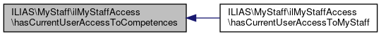 Here is the caller graph for this function:| ILIAS\MyStaff\ilMyStaffAccess::hasCurrentUserAccessToCompetences | ( | ) |
