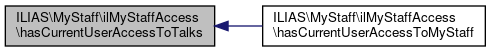 Here is the caller graph for this function:| ILIAS\MyStaff\ilMyStaffAccess::hasCurrentUserAccessToTalks | ( | ) |