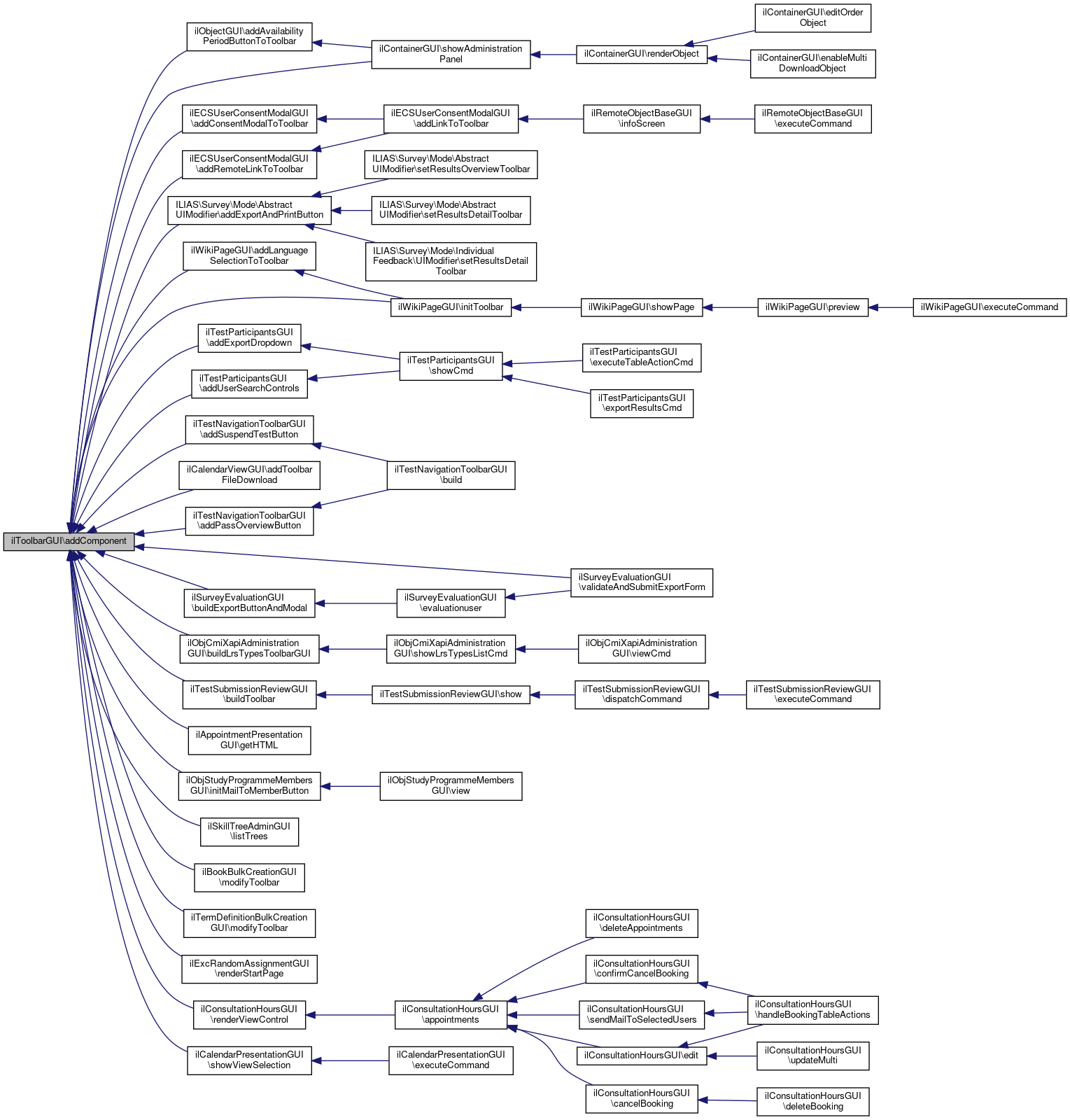 Here is the call graph for this function:| ilToolbarGUI::addComponent | ( | \ILIAS\UI\Component\Component | $a_comp | ) |