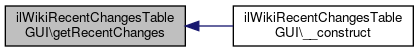 Here is the call graph for this function:| ilWikiRecentChangesTableGUI::getRecentChanges | ( | ) |