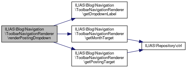 References ILIAS\Blog\Navigation\ToolbarNavigationRenderer\$blog_page, ILIAS\Blog\Navigation\ToolbarNavigationRenderer\$portfolio_page, ILIAS\Repository\ctrl(), ILIAS\Blog\Navigation\ToolbarNavigationRenderer\getMonthTarget(), ILIAS\Blog\Navigation\ToolbarNavigationRenderer\getNextMonth(), ILIAS\Blog\Navigation\ToolbarNavigationRenderer\getNextPosting(), ILIAS\Blog\Navigation\ToolbarNavigationRenderer\getPostingTarget(), ILIAS\Blog\Navigation\ToolbarNavigationRenderer\getPreviousMonth(), ILIAS\Blog\Navigation\ToolbarNavigationRenderer\getPreviousPosting(), ILIAS\Blog\Navigation\ToolbarNavigationRenderer\renderActionDropdown(), ILIAS\Blog\Navigation\ToolbarNavigationRenderer\renderMonthDropdown(), ILIAS\Blog\Navigation\ToolbarNavigationRenderer\renderNextButton(), ILIAS\Blog\Navigation\ToolbarNavigationRenderer\renderPostingDropdown(), and ILIAS\Blog\Navigation\ToolbarNavigationRenderer\renderPreviousButton().