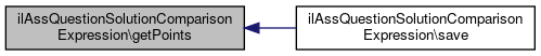 Here is the caller graph for this function:| ilAssQuestionSolutionComparisonExpression::getPoints | ( | ) |