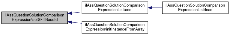 Here is the caller graph for this function:| ilAssQuestionSolutionComparisonExpression::setSkillBaseId | ( | $skillBaseId | ) |