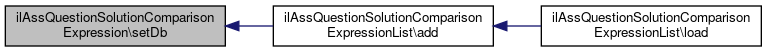 Here is the call graph for this function:| ilAssQuestionSolutionComparisonExpression::setDb | ( | $db | ) |