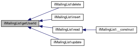 Here is the caller graph for this function:| ilMailingList::getUserId | ( | ) |