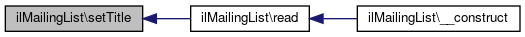 Here is the caller graph for this function:| ilMailingList::setTitle | ( | string | $a_title = '' | ) |