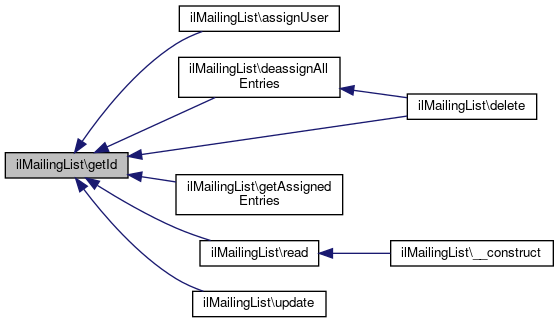 Here is the caller graph for this function:| ilMailingList::getId | ( | ) |
