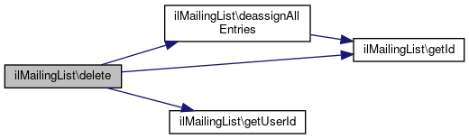 Here is the caller graph for this function:| ilMailingList::delete | ( | ) |