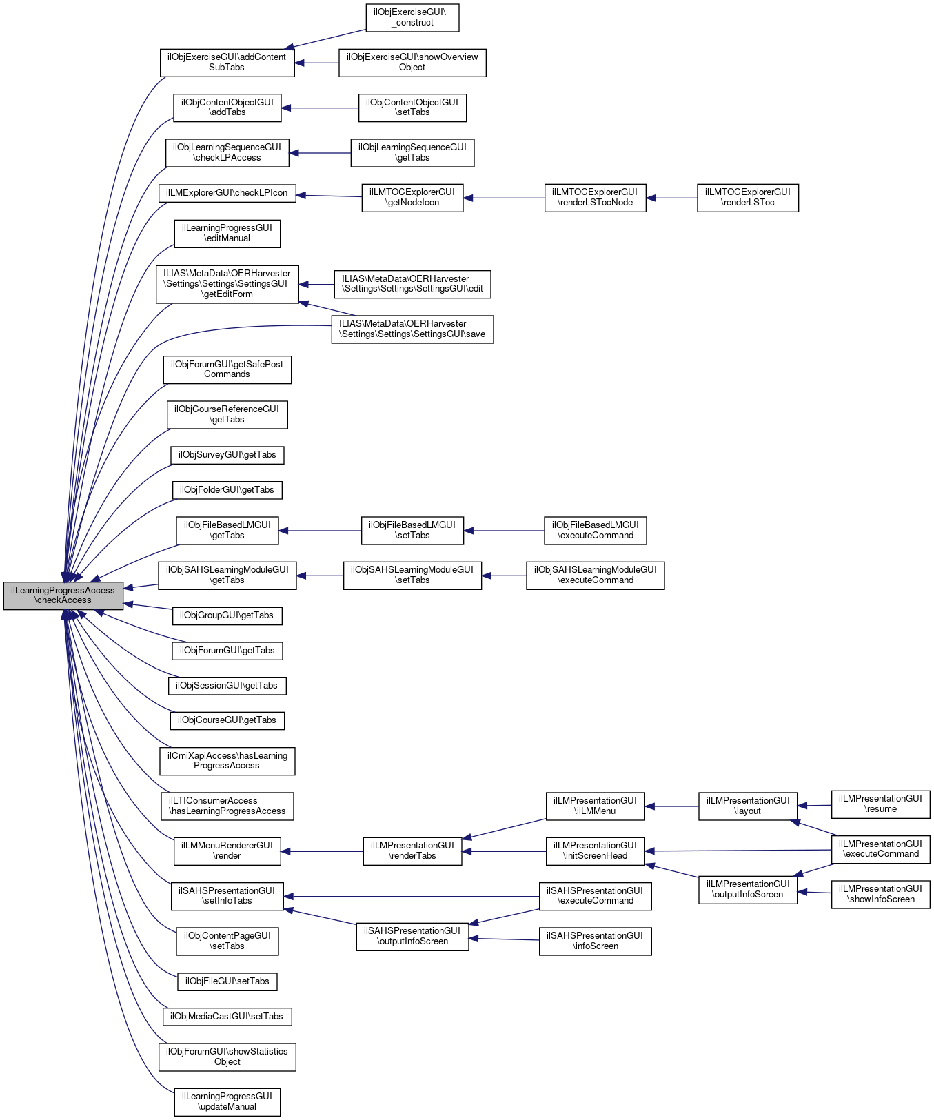Referenced by ilObjExerciseGUI\addContentSubTabs(), ilObjContentObjectGUI\addTabs(), ilObjLearningSequenceGUI\checkLPAccess(), ilLMExplorerGUI\checkLPIcon(), ilLearningProgressGUI\editManual(), ILIAS\MetaData\OERHarvester\Settings\Settings\SettingsGUI\getEditForm(), ilObjForumGUI\getSafePostCommands(), ilObjCourseReferenceGUI\getTabs(), ilObjSurveyGUI\getTabs(), ilObjFolderGUI\getTabs(), ilObjFileBasedLMGUI\getTabs(), ilObjSAHSLearningModuleGUI\getTabs(), ilObjGroupGUI\getTabs(), ilObjForumGUI\getTabs(), ilObjSessionGUI\getTabs(), ilObjCourseGUI\getTabs(), ilCmiXapiAccess\hasLearningProgressAccess(), ilLTIConsumerAccess\hasLearningProgressAccess(), ilLMMenuRendererGUI\render(), ILIAS\MetaData\OERHarvester\Settings\Settings\SettingsGUI\save(), ilSAHSPresentationGUI\setInfoTabs(), ilObjContentPageGUI\setTabs(), ilObjFileGUI\setTabs(), ilObjMediaCastGUI\setTabs(), ilObjForumGUI\showStatisticsObject(), and ilLearningProgressGUI\updateManual().