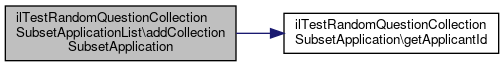 Here is the call graph for this function:| ilTestRandomQuestionCollectionSubsetApplicationList::addCollectionSubsetApplication | ( | ilTestRandomQuestionCollectionSubsetApplication | $collectionSubsetApplication | ) |