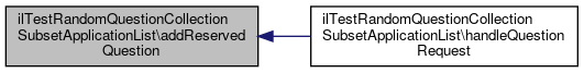Here is the call graph for this function:| ilTestRandomQuestionCollectionSubsetApplicationList::addReservedQuestion | ( | ilTestRandomQuestionSetQuestion | $reservedQuestion | ) |