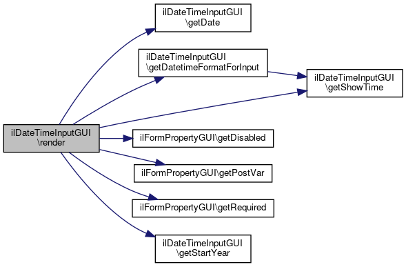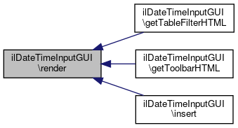 Here is the call graph for this function:| ilDateTimeInputGUI::render | ( | ) |