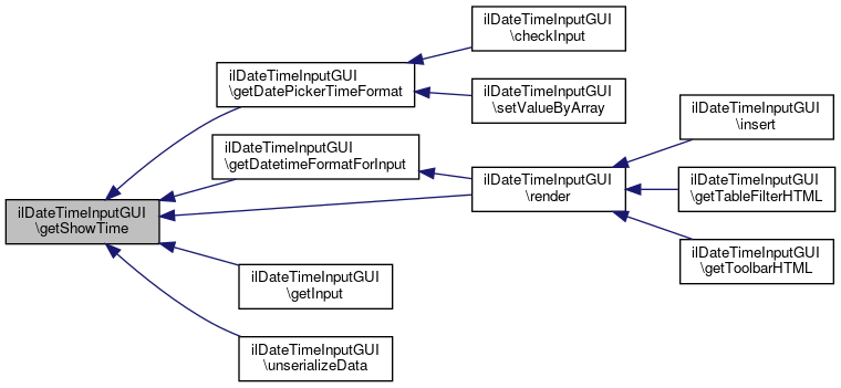 Here is the call graph for this function:| ilDateTimeInputGUI::getShowTime | ( | ) |