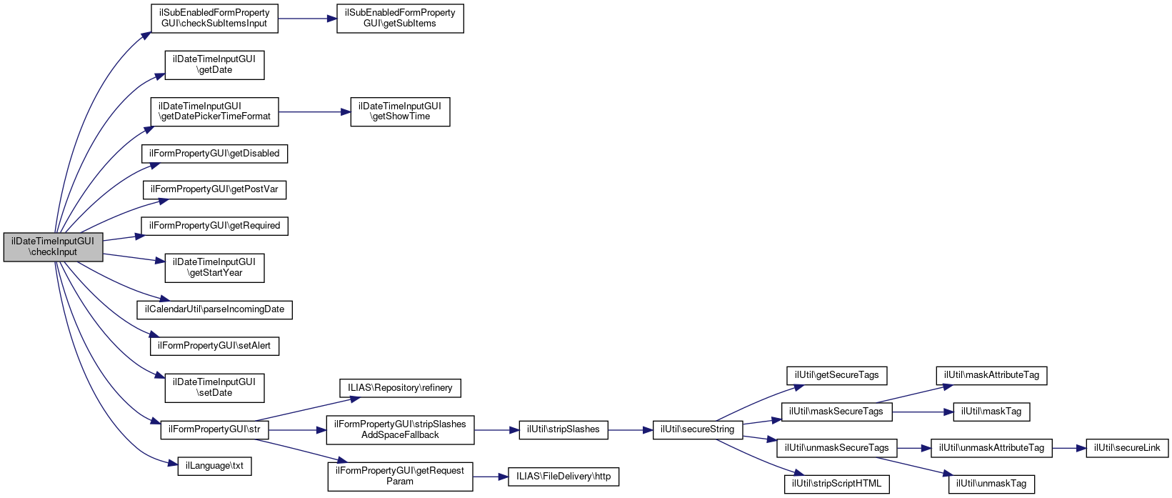 Here is the call graph for this function:| ilDateTimeInputGUI::checkInput | ( | ) |