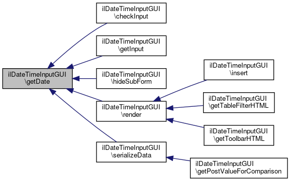 Here is the call graph for this function:| ilDateTimeInputGUI::getDate | ( | ) |