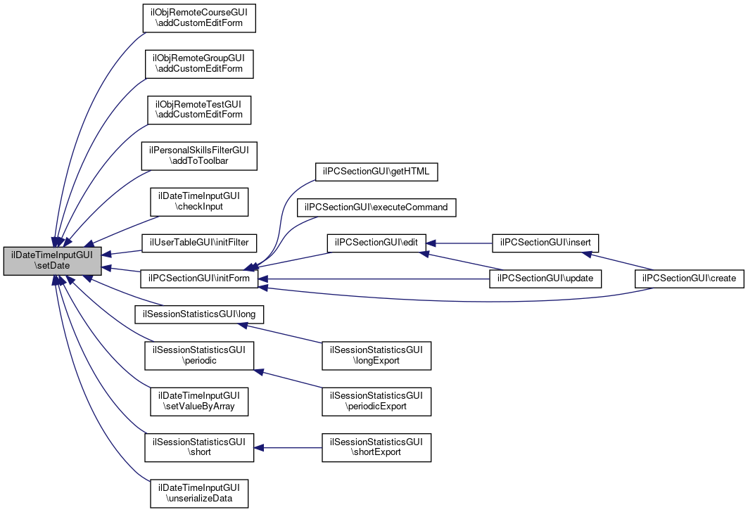 Here is the caller graph for this function:| ilDateTimeInputGUI::setDate | ( | ilDateTime | $a_date = null | ) |