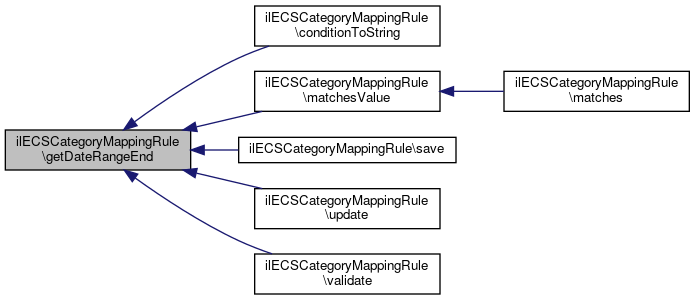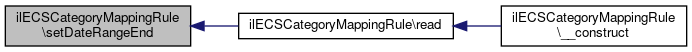 Here is the caller graph for this function:| ilECSCategoryMappingRule::setDateRangeEnd | ( | ilDate | $end | ) |