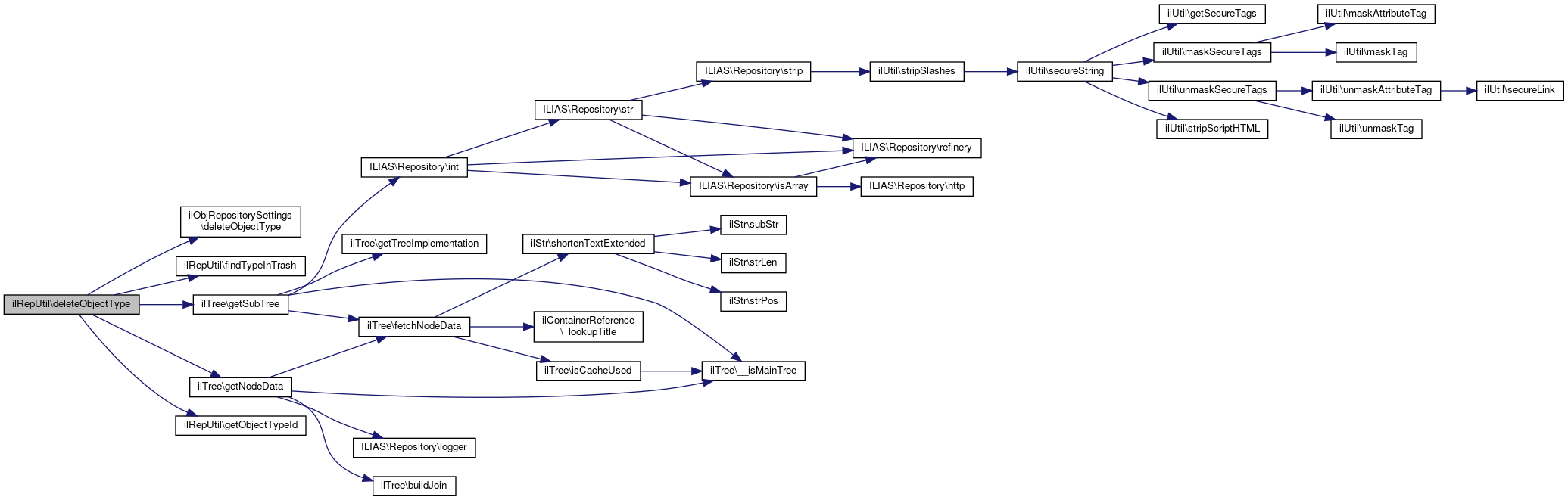 Here is the caller graph for this function:| ilRepUtil::deleteObjectType | ( | string | $a_type | ) |