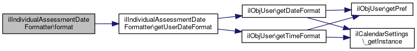 Here is the call graph for this function:| ilIndividualAssessmentDateFormatter::getUserDateFormat | ( | ilObjUser | $user, |
