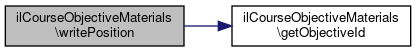 Here is the call graph for this function:| ilCourseObjectiveMaterials::writePosition | ( | int | $a_ass_id, |