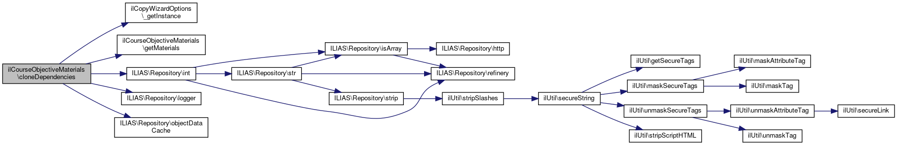 Here is the call graph for this function:| ilCourseObjectiveMaterials::cloneDependencies | ( | int | $a_new_objective, |
