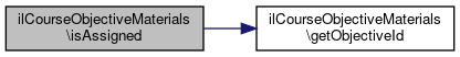 Here is the caller graph for this function:| ilCourseObjectiveMaterials::isAssigned | ( | int | $a_ref_id, |