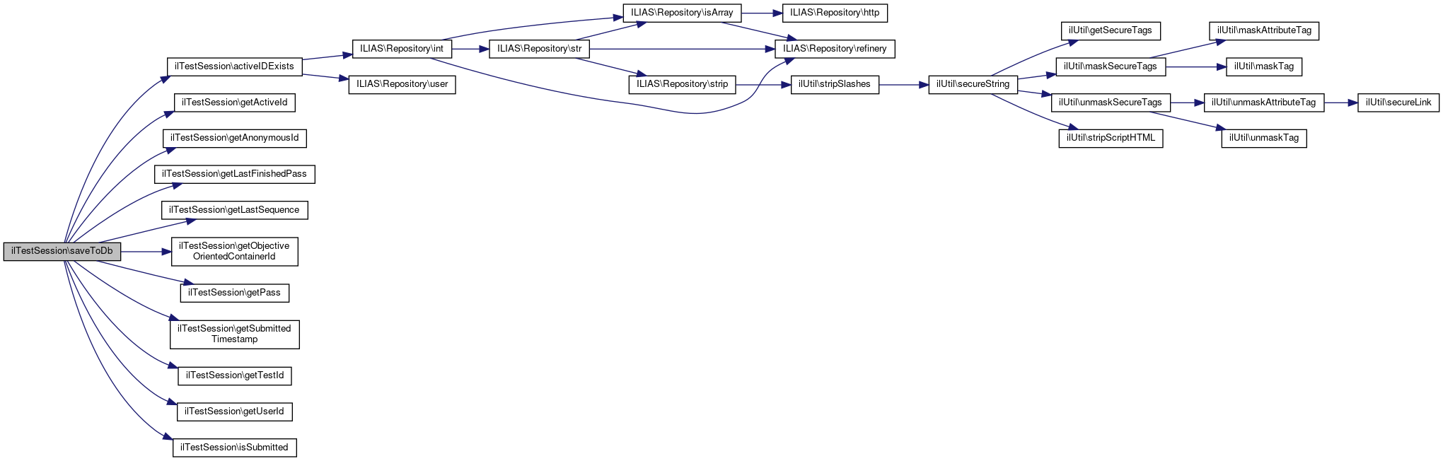 Here is the call graph for this function:| ilTestSession::saveToDb | ( | ) |