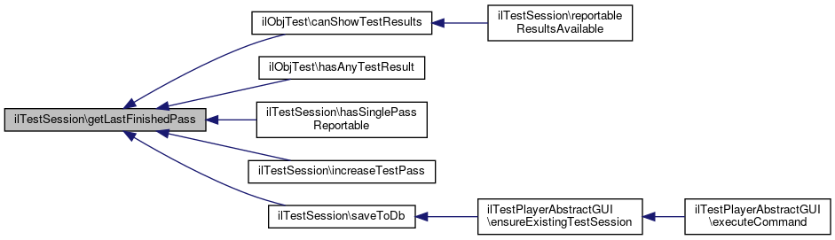 Here is the caller graph for this function:| ilTestSession::getLastFinishedPass | ( | ) |