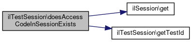 Here is the call graph for this function:| ilTestSession::doesAccessCodeInSessionExists | ( | ) |