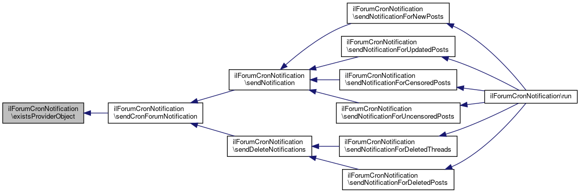 Here is the caller graph for this function:| ilForumCronNotification::existsProviderObject | ( | int | $provider_id, |