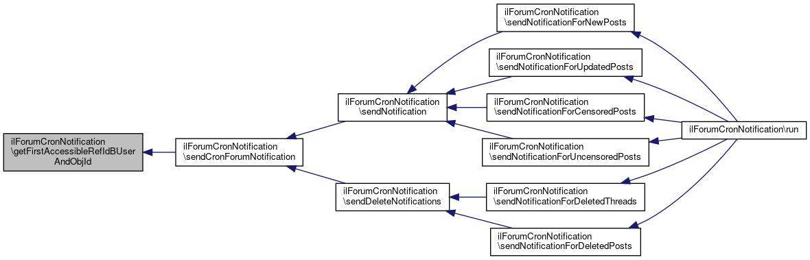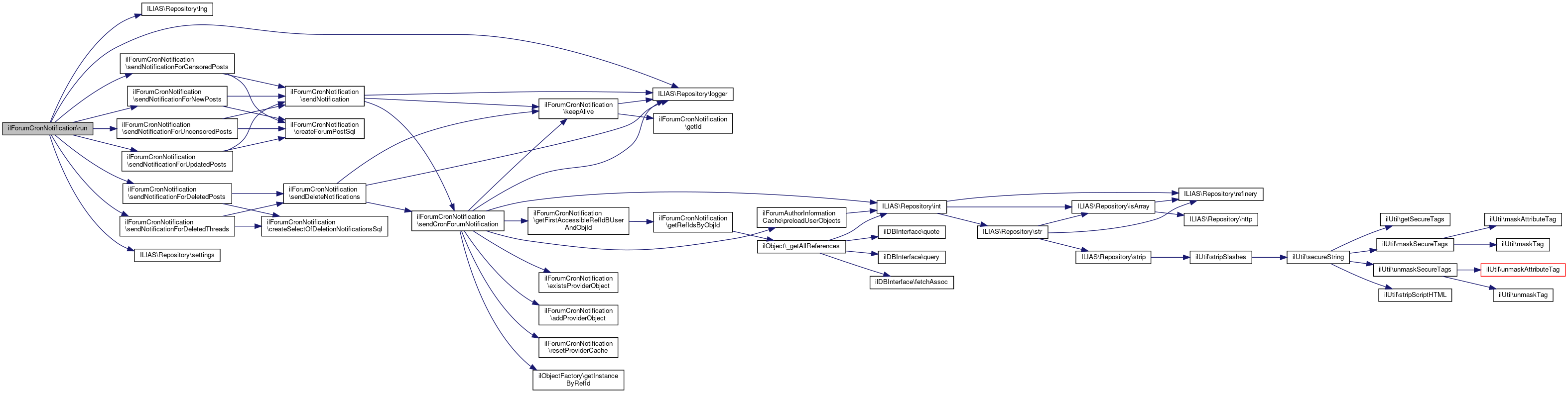 Here is the caller graph for this function:| ilForumCronNotification::run | ( | ) |