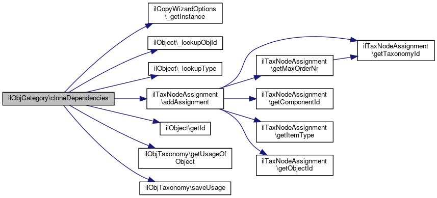 Here is the call graph for this function:| ilObjCategory::cloneDependencies | ( | int | $target_id, |