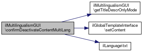 Here is the caller graph for this function:| ilMultilingualismGUI::confirmDeactivateContentMultiLang | ( | ) |