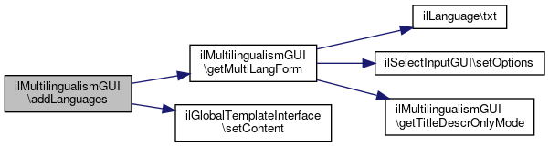 Here is the call graph for this function:| ilMultilingualismGUI::addLanguages | ( | ilPropertyFormGUI | $form = null | ) |