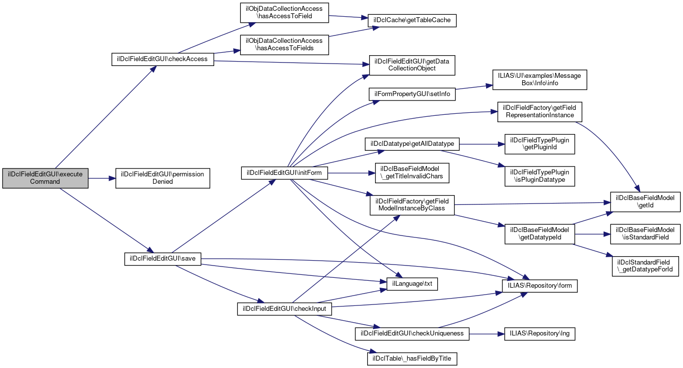 Here is the call graph for this function:| ilDclFieldEditGUI::executeCommand | ( | ) |