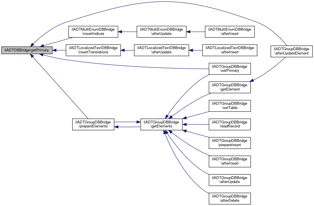 Referenced by ilADTLocalizedTextDBBridge\afterUpdate(), ilADTMultiEnumDBBridge\insertIndices(), ilADTLocalizedTextDBBridge\insertTranslations(), ilADTGroupDBBridge\prepareElements(), ilADTEnumDBBridge\prepareInsert(), ilADTFloatDBBridge\prepareInsert(), ilADTIntegerDBBridge\prepareInsert(), ilADTLocationDBBridge\prepareInsert(), ilADTTextDBBridge\prepareInsert(), ilADTBooleanDBBridge\prepareInsert(), ilADTDateDBBridge\prepareInsert(), ilADTDateTimeDBBridge\prepareInsert(), ilADTInternalLinkDBBridge\prepareInsert(), ilADTExternalLinkDBBridge\prepareInsert(), ilADTLocalizedTextDBBridge\prepareInsert(), ilADTMultiTextDBBridge\prepareMultiInsert(), ilADTMultiTextDBBridge\readMultiRecord(), ilADTFloatDBBridge\readRecord(), ilADTEnumDBBridge\readRecord(), ilADTLocationDBBridge\readRecord(), ilADTIntegerDBBridge\readRecord(), ilADTTextDBBridge\readRecord(), ilADTDateDBBridge\readRecord(), ilADTDateTimeDBBridge\readRecord(), ilADTBooleanDBBridge\readRecord(), ilADTInternalLinkDBBridge\readRecord(), ilADTExternalLinkDBBridge\readRecord(), ilADTMultiEnumDBBridge\readRecord(), ilADTLocalizedTextDBBridge\readRecord(), ilADTGroupDBBridge\setPrimary(), and ilADTGroupDBBridge\setTable().