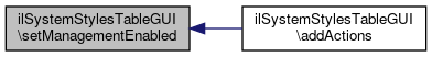 Here is the caller graph for this function:| ilSystemStylesTableGUI::setManagementEnabled | ( | bool | $management_enabled | ) |