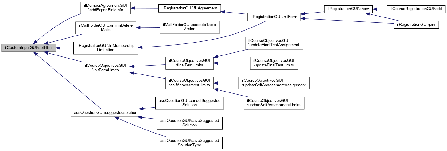 Here is the call graph for this function:| ilCustomInputGUI::setHtml | ( | string | $a_html | ) |