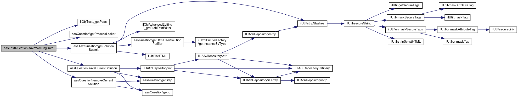 Here is the call graph for this function:| assTextQuestion::saveWorkingData | ( | int | $active_id, |