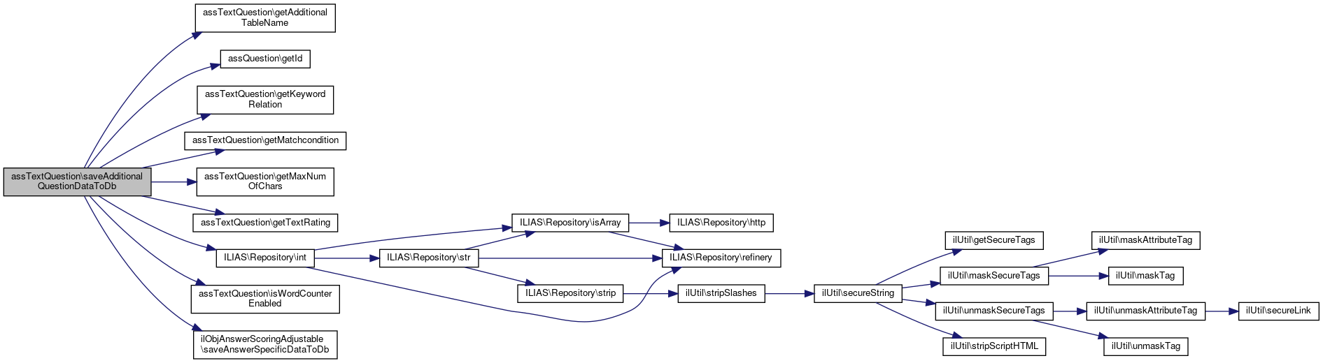 Here is the call graph for this function:| assTextQuestion::saveAdditionalQuestionDataToDb | ( | ) |