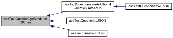 References assQuestion\formatSAQuestion(), assQuestion\getId(), getMaxNumOfChars(), assQuestion\getNrOfTries(), assQuestion\getQuestion(), getQuestionType(), assQuestion\getShuffle(), and assQuestion\getTitleForHTMLOutput().